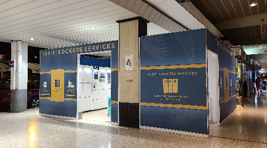 There are baggage lockers at the Papeete airport in case you have a very long layover which are located near the check in area and before you get to security.