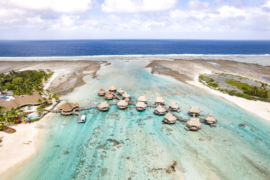 Flights from Papeete with a 55-minute flight time, and 20 minute flights from Rangiroa. Once at the airport, you will have a boat launch to take you to one of the two resorts on the island.